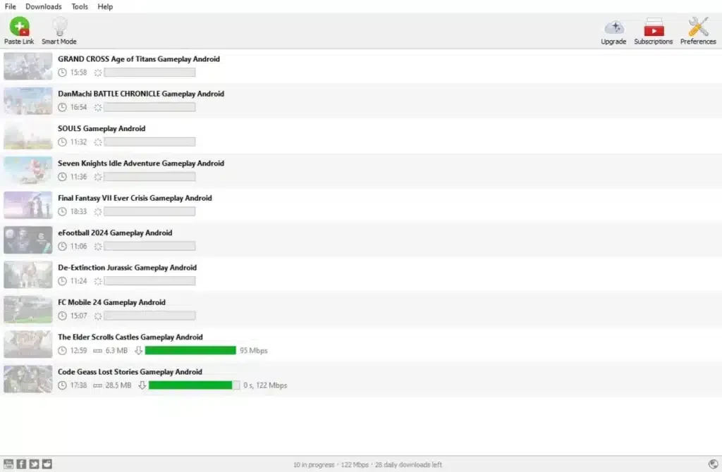 Anda akan menemukan daftar lengkap platform media sosial pendukung yang dapat Anda gunakan untuk mengunduh video . Anda dapat berlangganan kanal atau daftar putar favorit untuk mengunduh video dengan cepat. Anda dapat mengunduh video dari YouTube, Dailymotion, Tumblr, Instagram, Facebook, X (Twitter) , Vimeo, dll. Anda juga memiliki opsi untuk memecah berkas video besar menjadi beberapa bagian yang dapat diunduh untuk mengunduh video besar favorit Anda dengan mudah.